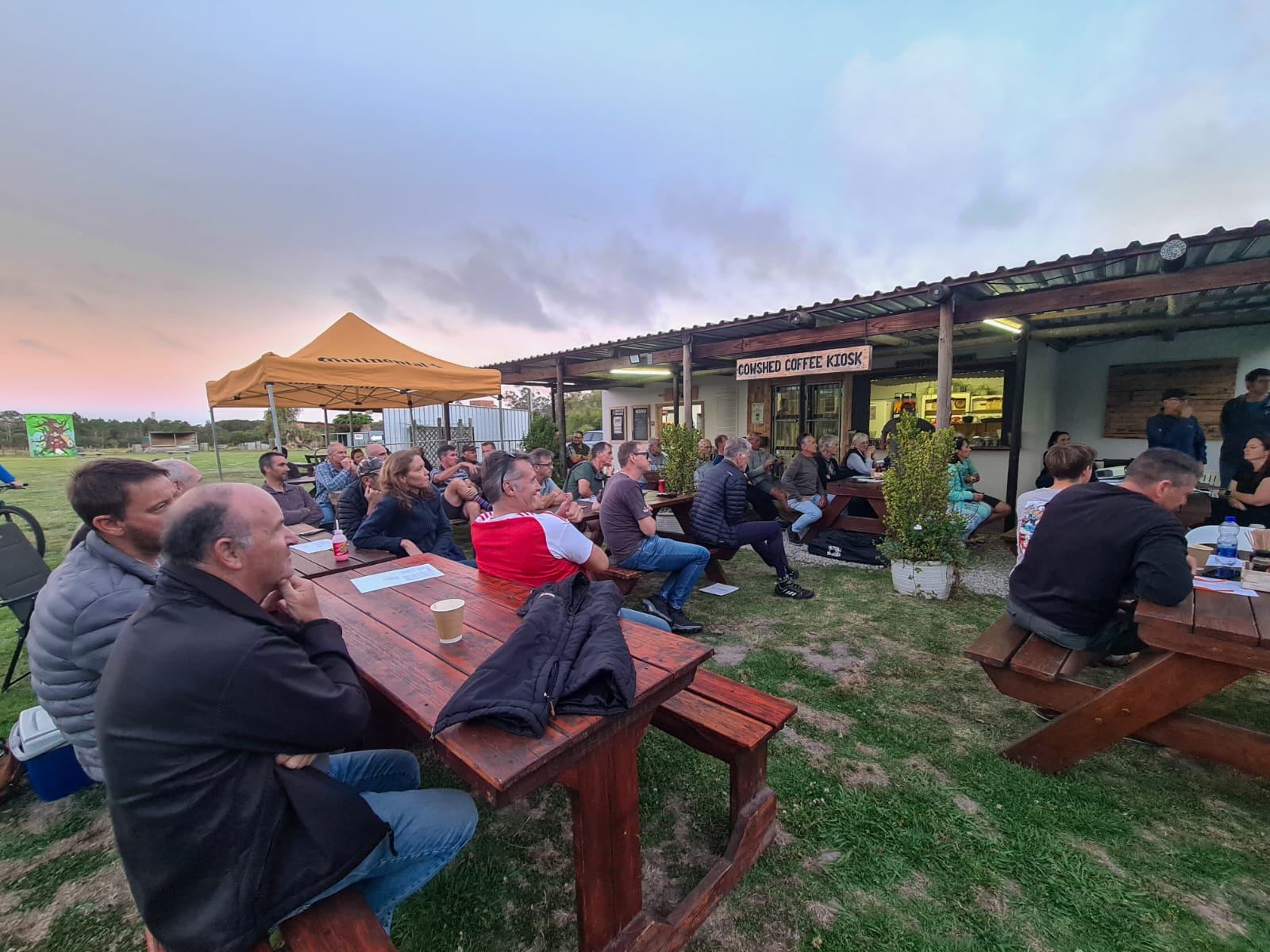 Left to right: Brenton van Waltsleben – Trail Maintenance & Infrastructure (supported by Jared Loenen, Ivor Smith & Stefan Oosthuizen), William Craven – Marketing, Member & Community Engagement, Johan Gerryts – Treasurer & Financial Management, Ian Olivier – Sponsorships & Partnerships, Scott Woods – CSA club rep & XCO events liaison, Hettie Van Vuuren – Merchandising & Events, Marius Olivier – Chairman, Jared Loenen – Supporting Trail Maintenance & Infrastructure